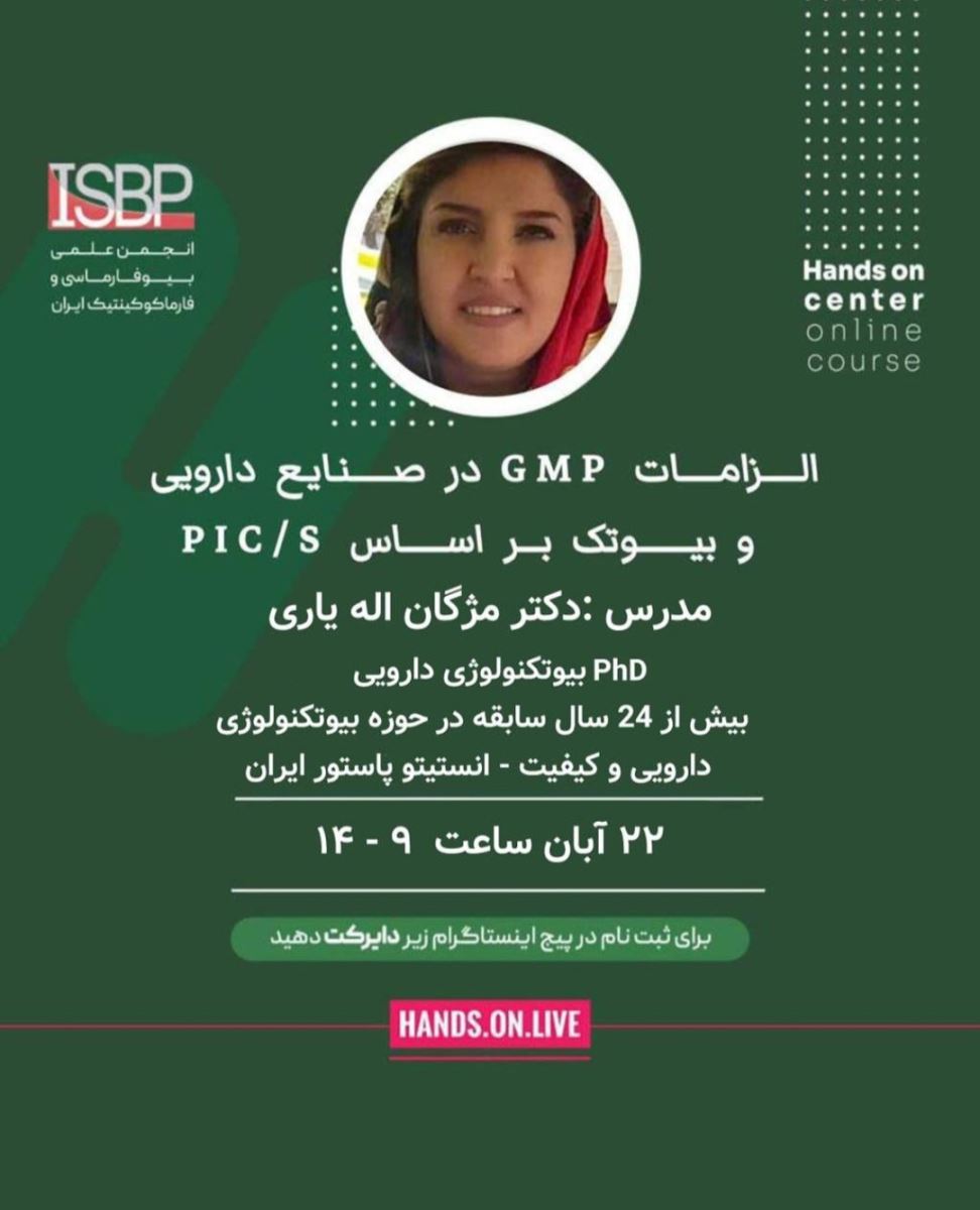 کارگاه آموزشی آنلاین "الزامات GMP در صنایع دارویی و بیوتک براساس PIC/S" با تدریس: